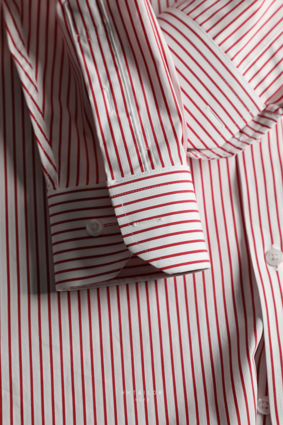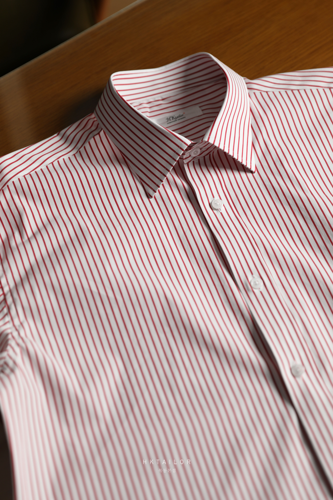 포인트 컬러 레드 스트라이프 맞춤셔츠