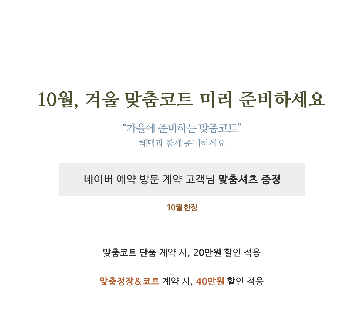 가을, 고객님의 테일러샵과 함께 준비하세요.