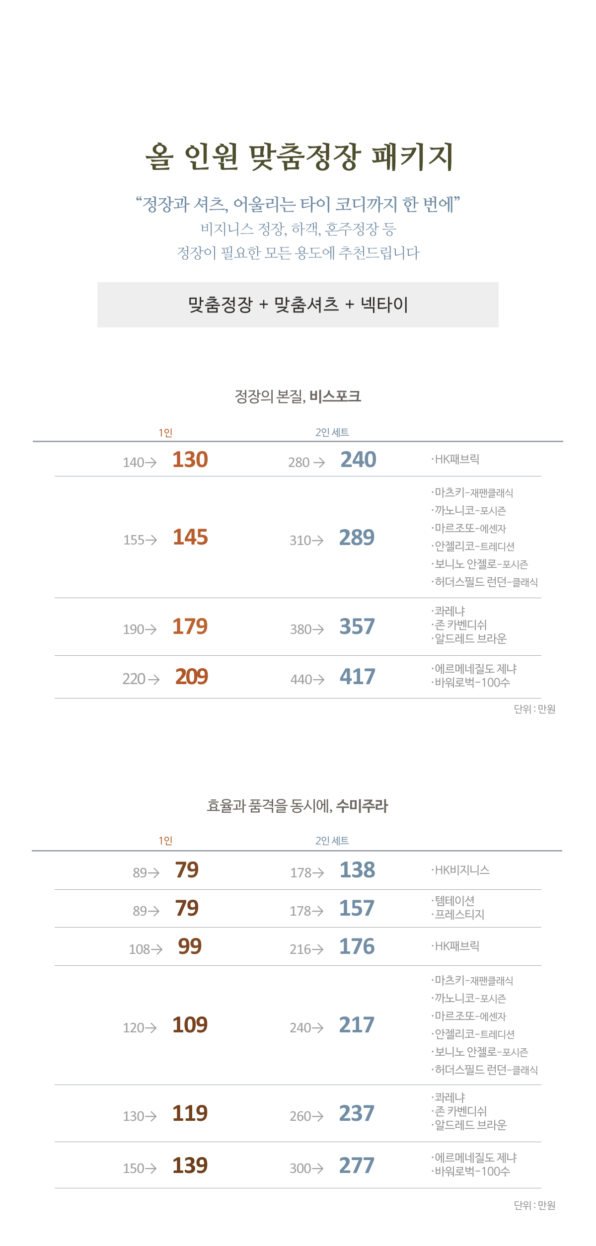 HK테일러 맞춤정장 프로모션 안내